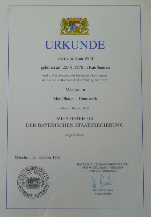 Mit diesem Schreiben bestellen Sie ihre erste Werkstatteinrichtung.